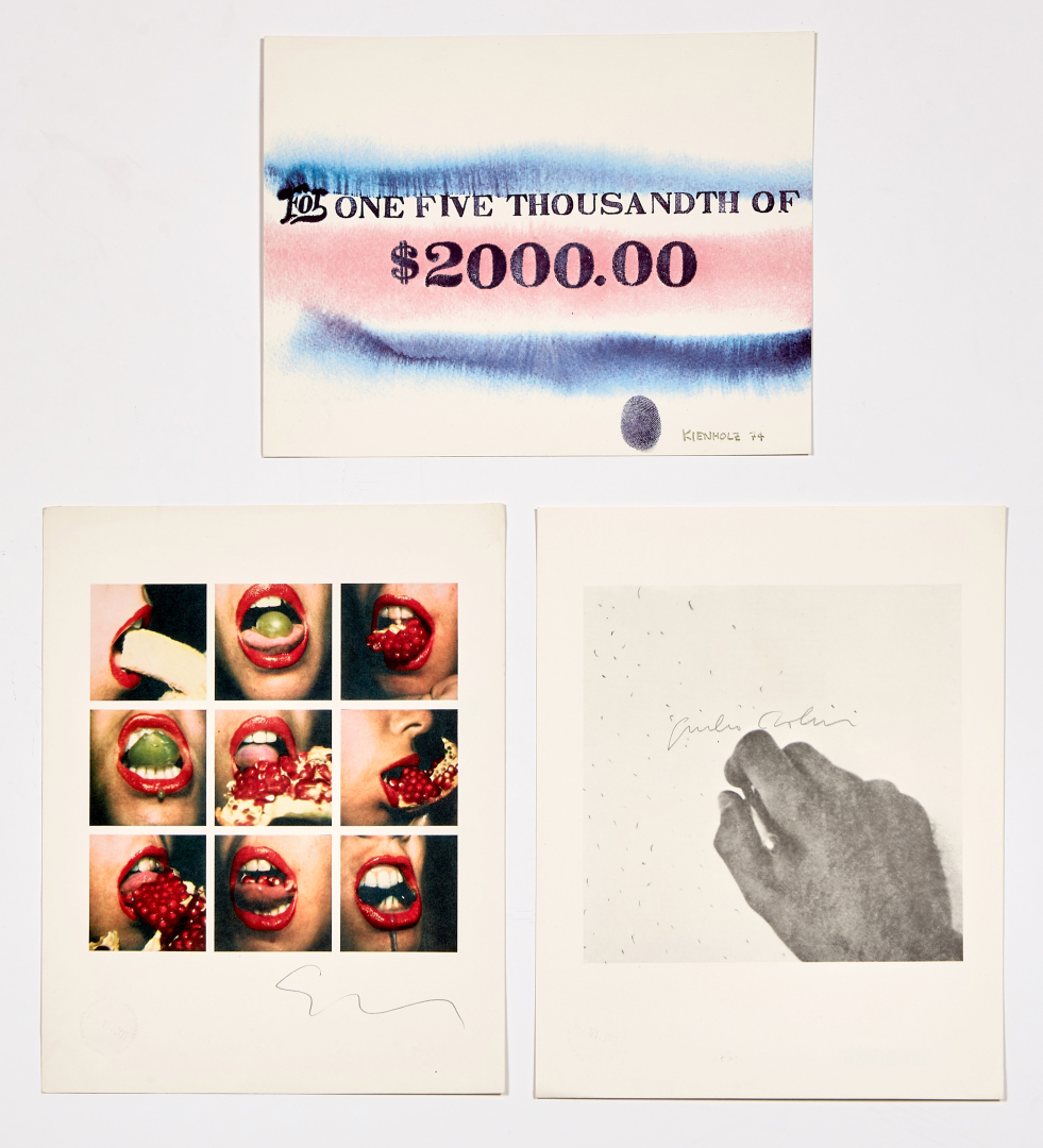 Lot completed by: Edward Kienholz, Il senso degli affari, 1974, Photolithographic reproduction, (2 colors offset), 10.63 x 8.27 in., signed and dated lower right recto, on the left BolaffiArte dry stamp, for which the series was produced.