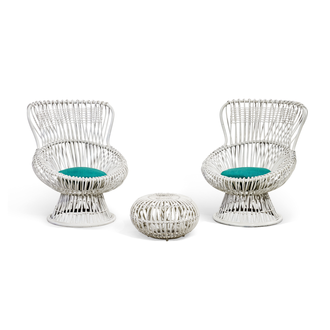 FRANCO ALBINI 1905-1977 Two 'Margherita' armchairs and a pouf 1951