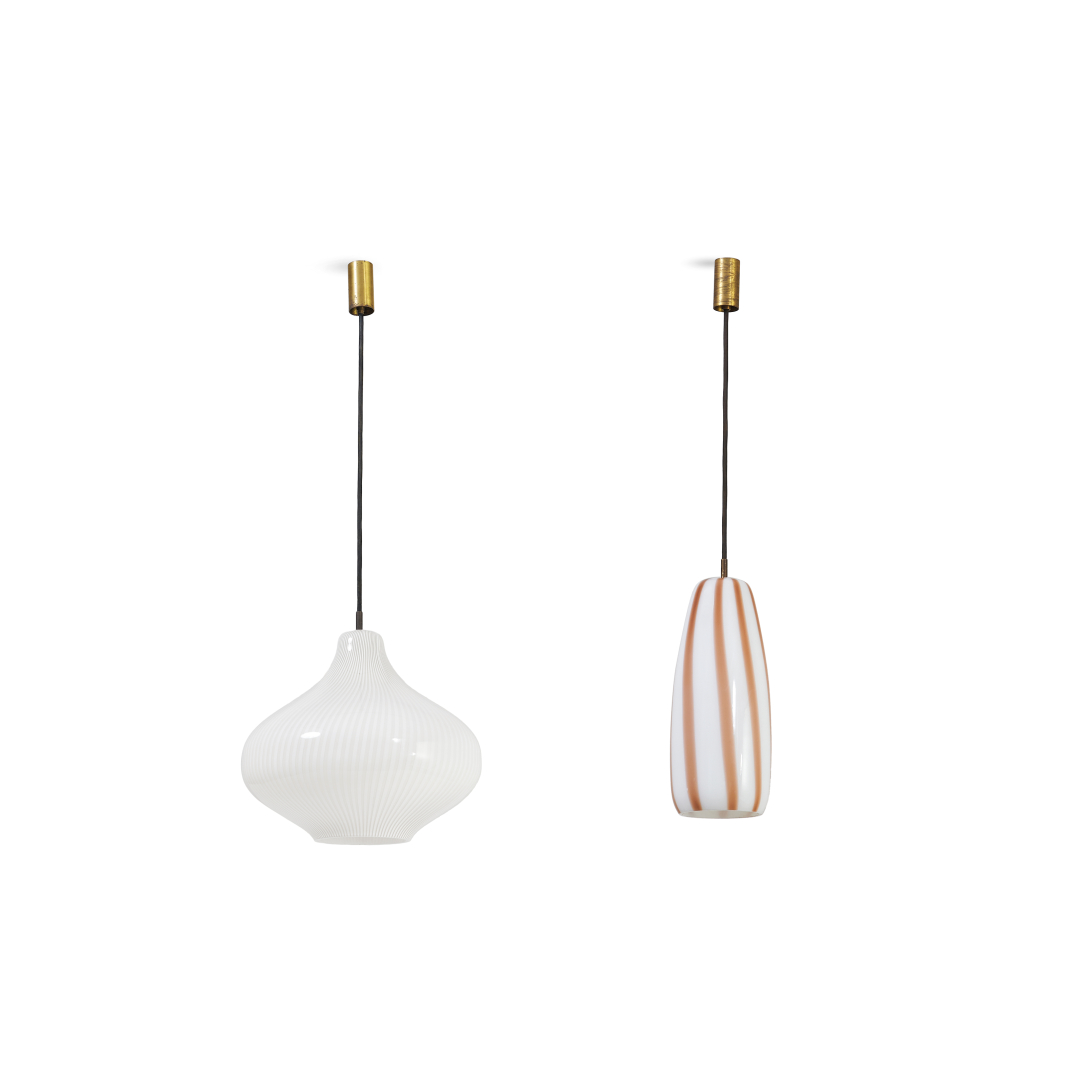 MASSIMO VIGNELLI 1931-2014 Two pendant lamps for Venini 1950s