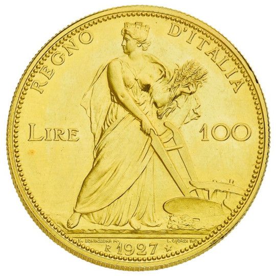Nell'immagine: Aste Bolaffi, 100 lire Aratrice 1927 (lotto 1161), Top Lot dell'asta di monete, banconote e medaglie di Mercoledì 6 e Giovedì 7 Dicembre 2023