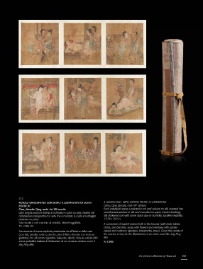 ROTOLO ORIZZONTALE CON SEDICI ILLUSTRAZIONI DI SCENE Each individual scene is painted in ink and colours on silk, inserted into