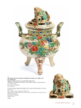 INCENSIERE TRIPODE DECORATO CON MOTIVI FLOREALI E UN ‘CANE DI FO’