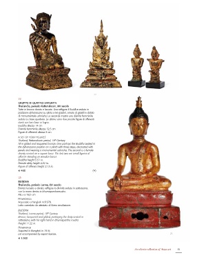 Tutte in bronzo dorato e laccato. Una raffigura il Buddha seduto in