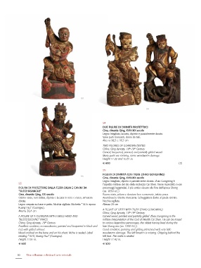 FIGURA DI PROTETTORE DALLA TESTA CALVA E CANINI DA Legno intagliato, dipinto e parzialmente dorato. Zhao Gongming è