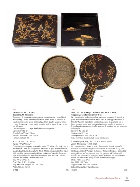 fondo nero decorata a oro. Completano il lotto quattro vassoi a fondo firmato “Fujiwara Yoshikane”. La scatola in legno è decorata a oro e
