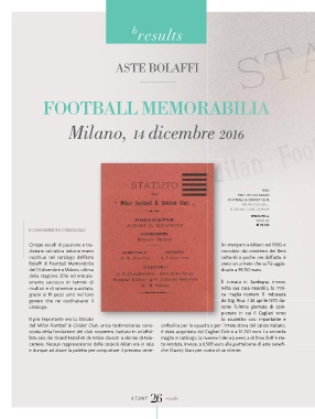 sciuta della fondazione del club rossonero, battuto in un’affol- è stata acquistata dal Cagliari Calcio a 16.250 euro. La seconda