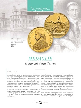 Le medaglie sono oggetti numismatici meno noti delle monete, Questa loro funzione determina anche una differenza di aspet-