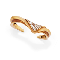 in oro giallo e diamanti eseguito in stile sinuoso moderno.