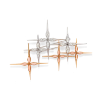 in oro giallo e bianco a motivo geometrico con petali di corallo rosa e diamanti.