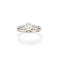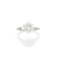 in oro bianco con diamante taglio brillante rotondo moderno di ct 0,90 ca. e diamanti taglio huit-huit sul gambo.