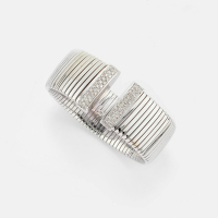 in oro bianco a maglie elastica larga piatta terminante con pavè di diamanti.