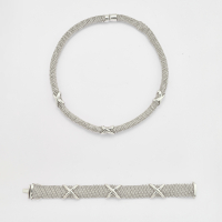 composta da collana e braccialetto realizzati ad elementi puntinati o a pelle di serpente con motivi a croce e a croce tonda sovrapposte. La collana presenta dei difetti.