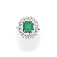 in oro bianco con diamanti vario taglio per complessivi ct. 2,00 ca. e smeraldo taglio rettangolare a gradini di ct. 2,5 ca.
