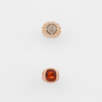 formato da un anello realizzato in oro giallo scanalato con fiore di pavè di diamanti e da un anello a fascia realizzato in oro rosso e quarzo citrino.