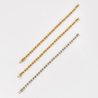 uno in oro giallo e uno in oro bianco, entrambi a maglia intrecciata. Italia, circa 1980.
