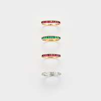 in oro giallo, una in diamanti per complessivi ct 0,35 ca., una in smeraldi per complessivi ct 0,30 ca. e una in rubini per complessivi ct 0,40 ca.