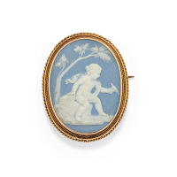 eseguito in oro giallo raffigurante un putto. Fine XIX secolo.