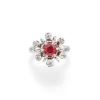 in oro bianco con pavè di rubini per ct 2,20 ca. e diamanti full & single cut per ct 0,20 ca.