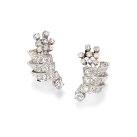 in oro bianco con motivo cornucopia con diamanti taglio brillante rotondo e taglio huit-huit.