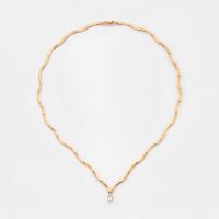 in oro giallo realizzato a elementi ondulati terminanti in un ciondolo a goccia con zircone incolore.