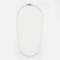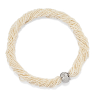 realizzata a torchon formato da ventuno fili di perline di fiume con chiusura in oro bianco e pavé di diamanti taglio brillante rotondo e huit-huit.