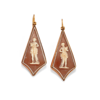 in oro giallo di forma allungata in conchiglia raffiguranti due immagini classiche.