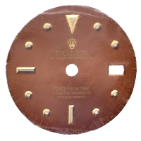 Color marrone, indici nipple. Entro custodia trasparente Rolex aperta.