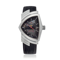 Quadrante: firmato, nero scheletrato, secondi al centro.