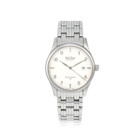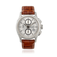Quadrante: firmato, argentée a due toni, indici applicati, secondi continui, contatori dei 30 minuti e delle 12 ore, data.