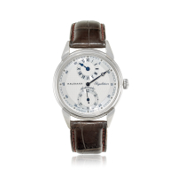 Quadrante: firmato, argentée con motivo flinqué, quadrantino decentrato delle ore, secondi al sei, lancetta centrale dei minuti, indici stampati.
