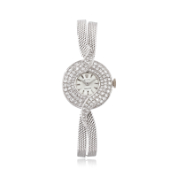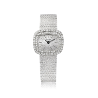 Cassa: firmata, n. 813658 A, in oro bianco 18K, fondello a scatto, corona sul retro, lunetta incastonata con 24 diamanti.