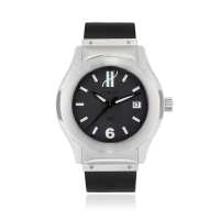 Quadrante: firmato, nero, indici luminescenti, secondi al 9, data.