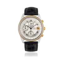 Quadrante: firmato, bianco, indici applicati, secondi continui con indicazione concentrica 24 ore, contatori 30 minuti e 12 ore, fasi lunari, calendario con giorno,