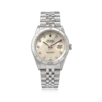 Quadrante: firmato, in madreperla, indici in brillanti, secondi al centro, data.