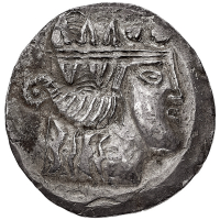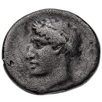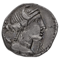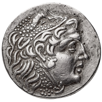 Regione del Danubio - Tetradramma a imitazione del Tetradramma di Thasos databile al I Secolo a.C. - Diritto: testa di Dioniso a sinistra con corona d'edera - Rovescio: Eracle stante a sinistra tiene una clava con la mano destra e la pelle del leone con la sinistra - leggi tutto