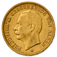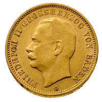 Baden - Friedrich II (1907-1918) - 20 Marchi 1912 - Zecca: Karlsruhe - Diritto: effigie del Re a sinistra - Rovescio: aquila imperiale coronata - gr. 7,97 - Lievi segni di contatto, SPL
