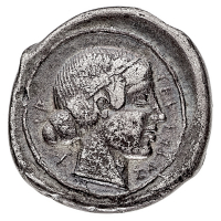 Siracusa - Periodo della Seconda Democrazia (466-406 a.C.) - Tetradramma databile al periodo 430-420 a.C. - Diritto: quadriga al passo verso destra sovrastata dalla Vittoria in volo nell'atto di incoronare i cavalli - Rovescio: testa di Aretusa a destra; attorno quattro leggi tutto