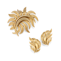 in lega Trifanium, composta da spilla e paio di orecchini a clip.