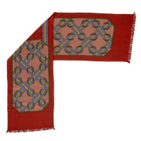 in cashmere e seta multicolore, con disegni di ferri da cavallo su grillage. Piccole frange finali.
