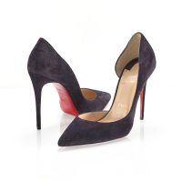 in pelle scamosciata mirtillo e iconica tomaia rossa con tacco 10.00 cm.