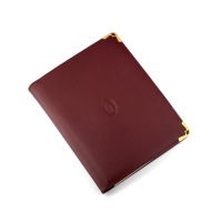 in pelle bordeaux con logo centrale la custodia, doppia tasca interna con rubrica telefonica e block notes. Hardware in metallo dorato.
