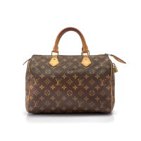 in tela Monogram marrone, interno in tela marrone. Doppio manico e dettagli in vacchetta. Chiusura con zip. Completa di lucchetto, personalizzata con iniziali F.B. Hardware in metallo dorato.