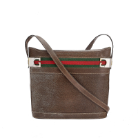 in pelle di cinghiale castagna, interno in camoscio beige. Tracolla regolabile in pelle. Chiusura con patta interna fermata a pressione. Riga Web e doppio logo frontale. Hardware in metallo dorato.