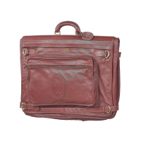 in pelle bordeaux, interno in tessuto moiré in tinta con cinghia ferma abiti e un porta abiti in metallo staccabile. Manico in pelle. Personalizzato con iniziali M.Z. Chiusura interna con zip, due tasche fermate da cerniera.