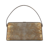 in Lizard beige, interno in tessuto logato in tinta. Manico in Lizard. Chiusura a scatto logato. Harware in metallo satinato.