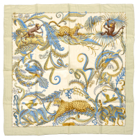 in seta multicolore con disegno di animali tropicali nella giungla.