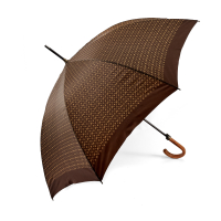 in tela Monogram marrone, manico in legno. Pulsante per apertura automatica.