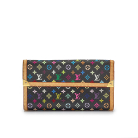 in tela nera e Monogram multicolor. Interno e dettagli in vacchetta. Tre scomparti portasoldi, uno chiuso con poussoir, quattro spazi portatessere. Chiusura con patta fermata da poussoir. Hardware in metallo