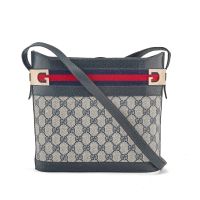 in pelle di cinghiale blu e tela gommata con motivo GG Supreme, interno in pelle blu. Tracolla regolabile in pelle. Chiusura con patta interna fermata a pressione. Riga Web e doppio logo frontale. Hardware in metallo dorato.