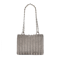 in metallo argento. I dischi metallici sono assemblati da occhielli in metallo. Tracolla regolabile. Hardware in metallo argentato.